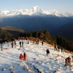 Today our trail winds onward and enters a rhododendron forest. In spring, the forest is ablaze with colour and, as we walk, trains of mules provide colourful and noisy interludes to the continuous ascent (there are many stone staircases today).Finally, we emerge at Ghorepani, a splendid mountain vista appearing before us – Dhaulagiri, Annapurna, Hiunchuli, Machhapuchhare, Lamjung and other Himalayan giants. We continue up through Ghorepani to our lodge in Upper Ghorepani, usually arriving by lunchtime.